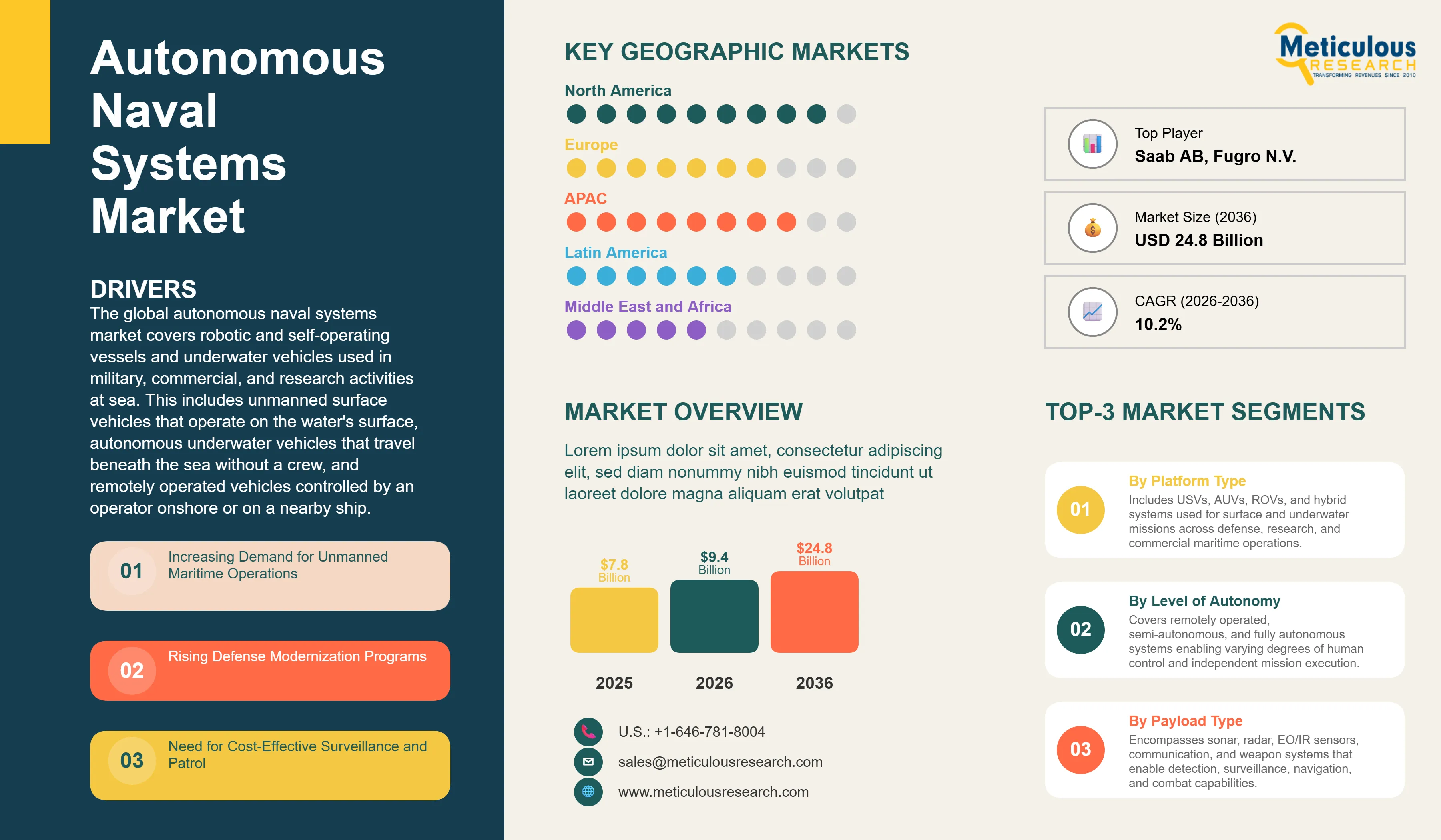 Autonomous Naval Systems Market Size, Share & Trends Analysis by Platform Type (USVs, AUVs, ROVs, Hybrid and Swarm Systems), Application, and End User - Global Opportunity Analysis & Industry Forecast (2026-2036)