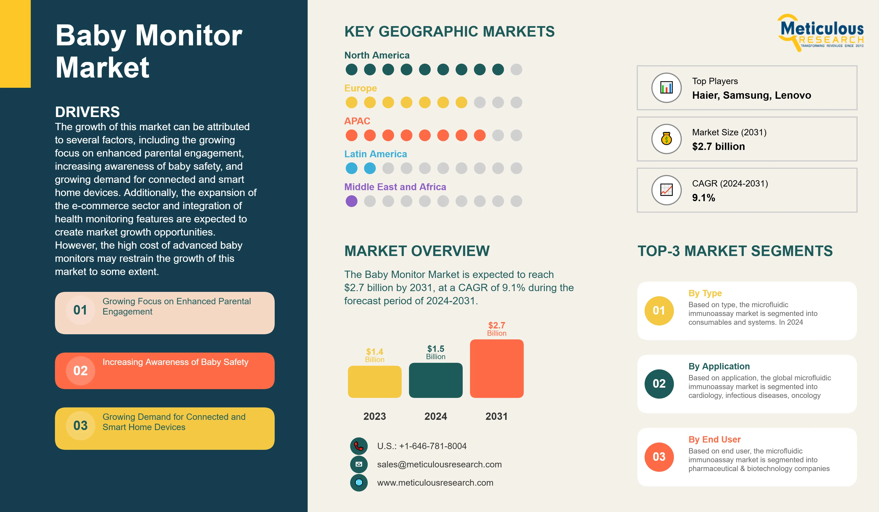 The baby monitor market analysis indicates a significant growth to reach $2.7 billion by 2031, at a compound annual growth rate (CAGR) of 9.1% from 2024 to 2031.