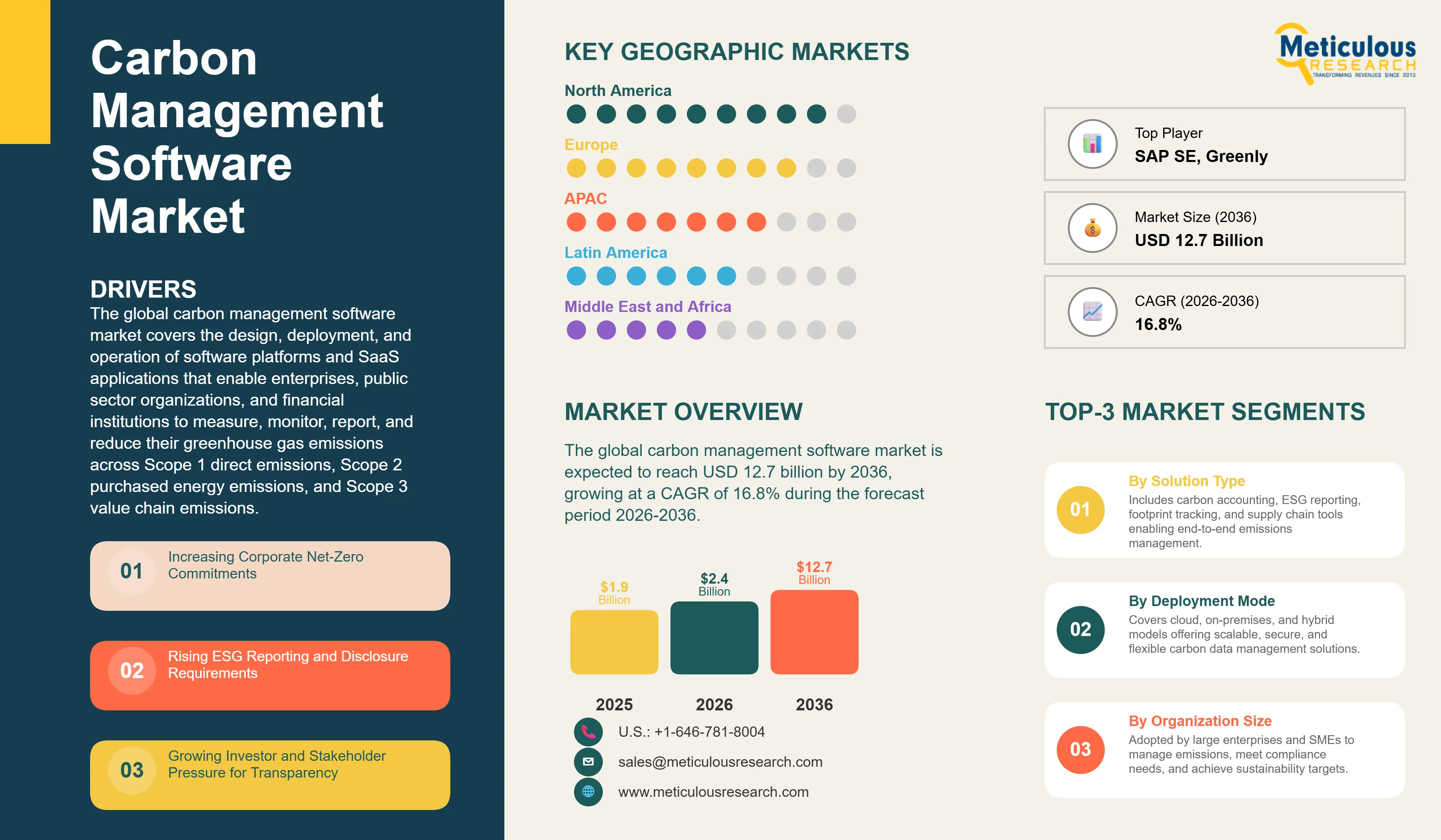 The growth of this market is primarily driven by the accelerating convergence of binding regulatory disclosure mandates including EU CSRD and SEC climate rules, the proliferation of corporate net-zero and science-based emissions reduction commitments across the global enterprise universe, the growing investor-led ESG due diligence requirements for auditable GHG inventory data, and the rapidly expanding demand for Scope 3 value chain emissions tracking that is progressively extending carbon management software adoption from large enterprise buyers down through supply chain tiers to mid-market and SME organizations.
