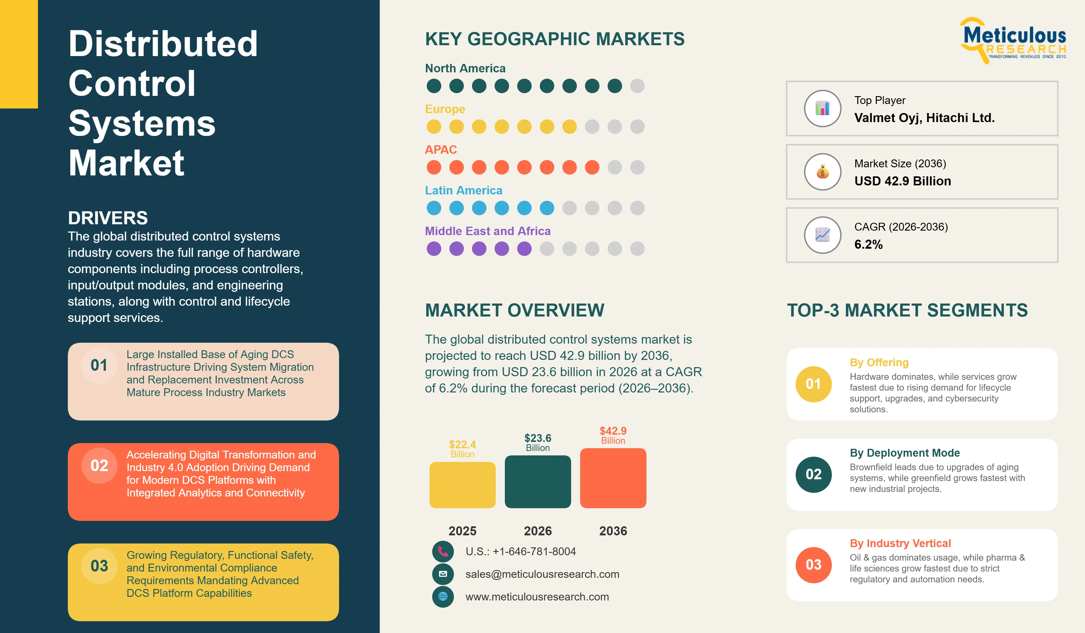 Distributed Control Systems Market Size, Share & Trends Analysis, by Offering, Deployment Mode (Greenfield, Brownfield), Industry Vertical, and Geography — Global Opportunity Analysis & Forecast (2026–2036)