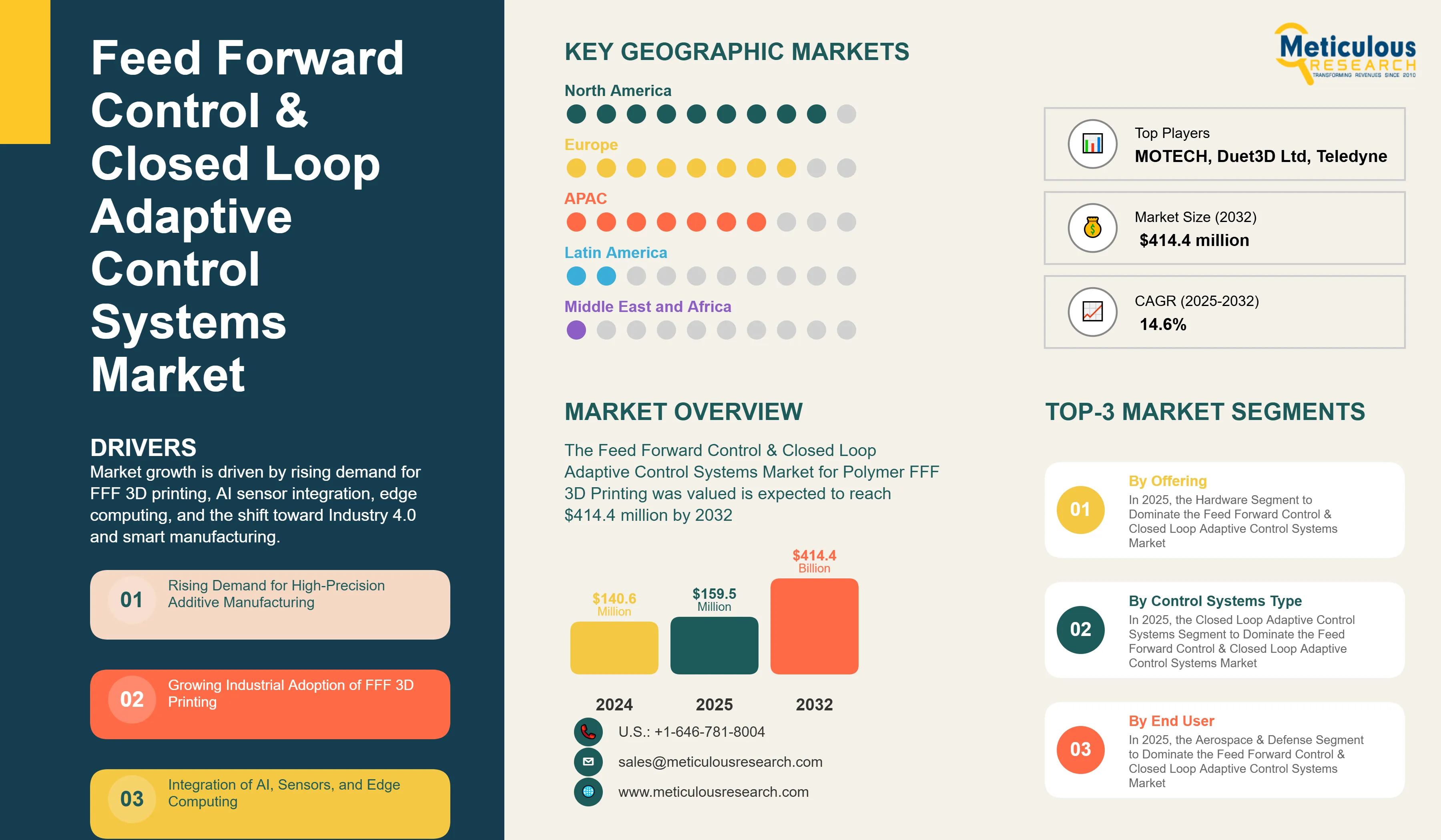 Feed Forward Control & Closed Loop Adaptive Control Systems Market for Polymer FFF 3D Printing Size, Share, Forecast, & Trends Analysis by Offering (Hardware, Software), Control System Type (Feed Forward, Closed Loop), Printer Type (Industrial), End User (Aerospace & Defense, Healthcare) - Global Forecast to 2032