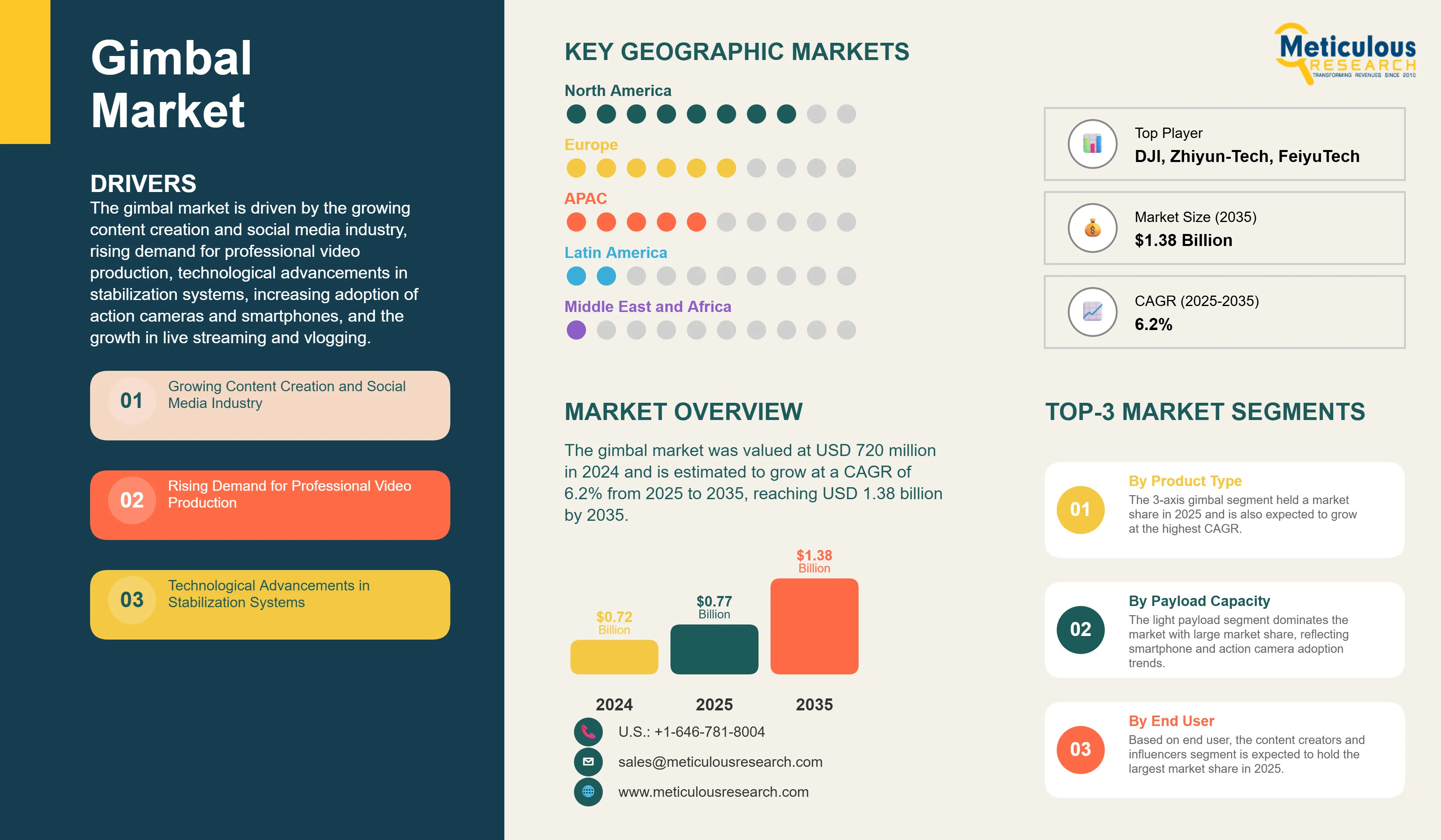 Gimbal Market: Size & Forecast by Type (3-Axis, Smart Gimbals), End User (Content Creators, Mobile Filmmakers) & Region - Global Forecast and Analysis to 2035