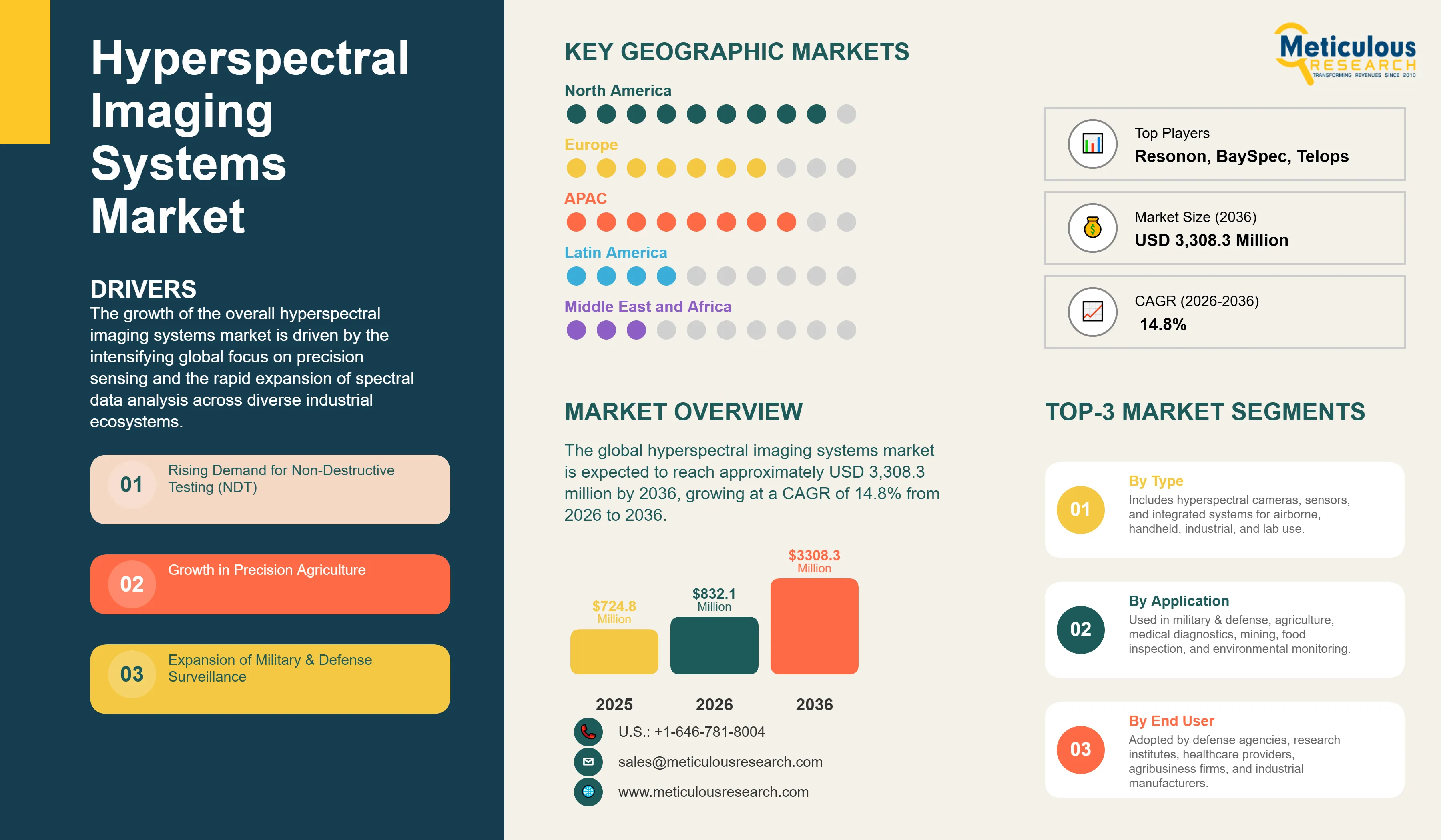 Hyperspectral Imaging Systems Market by Product (Hyperspectral Cameras, Accessories & Components, Software & Analytics), Technology (Push-broom, Snapshot, Others), and Application (Military & Defense, Remote Sensing, Medical & Life Sciences, Industrial Inspection, Others) – Global Forecast to 2036