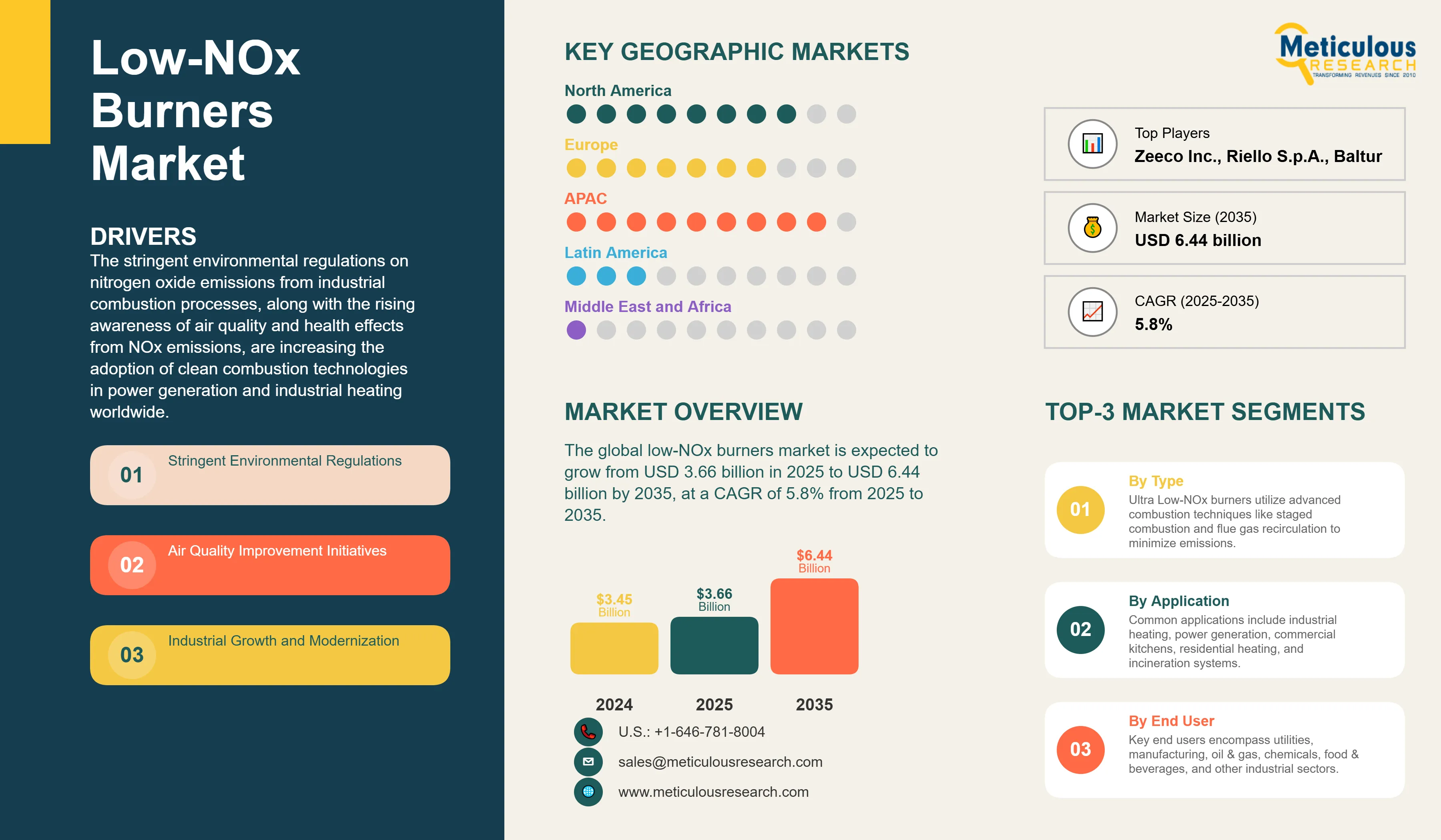 Low-NOx Burners Market by Type (Ultra Low-NOx, Low-NOx, Conventional), Fuel Type (Natural Gas, Oil, Dual Fuel), Technology (Staged Combustion, Flue Gas Recirculation), Capacity, Application, End User, and Geography—Global Forecast to 2035