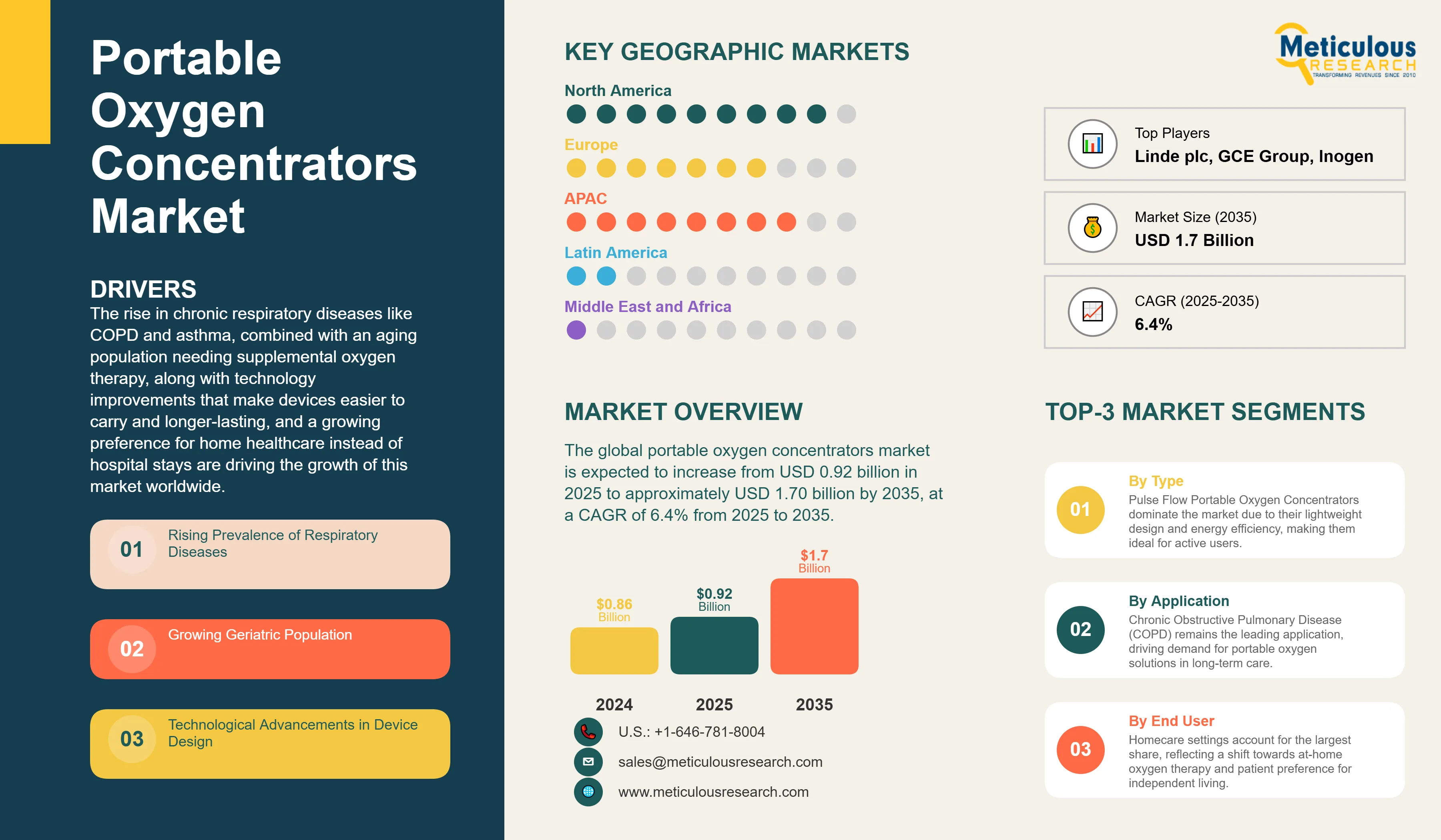 The rise in chronic respiratory diseases like COPD and asthma, combined with an aging population needing supplemental oxygen therapy, along with technology improvements that make devices easier to carry and longer-lasting, and a growing preference for home healthcare instead of hospital stays are driving the growth of this market worldwide.