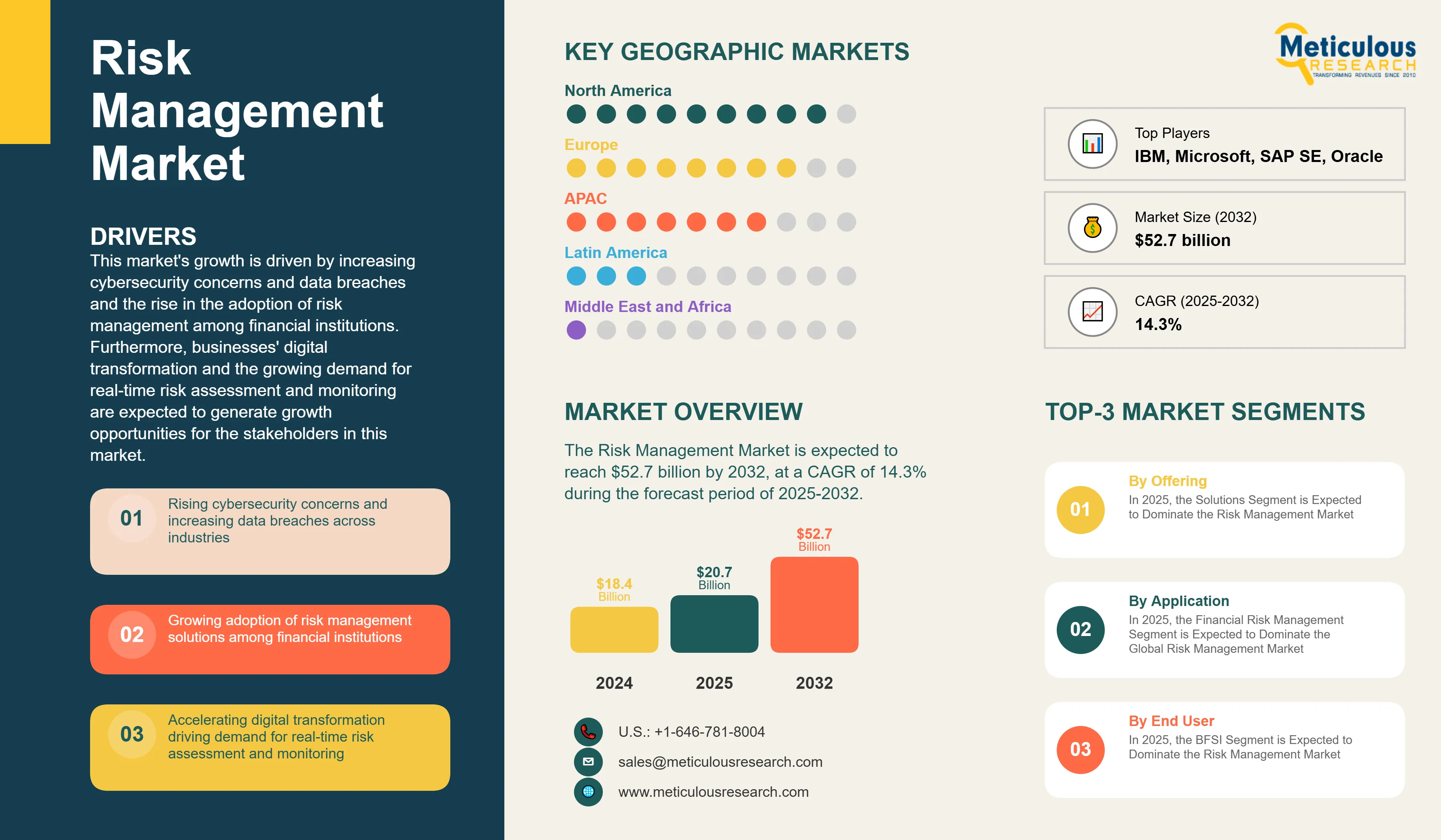 The risk management market analysis indicates a significant growth to reach $52.7 billion by 2032, at a compound annual growth rate (CAGR) of 14.3% from 2025 to 2032.