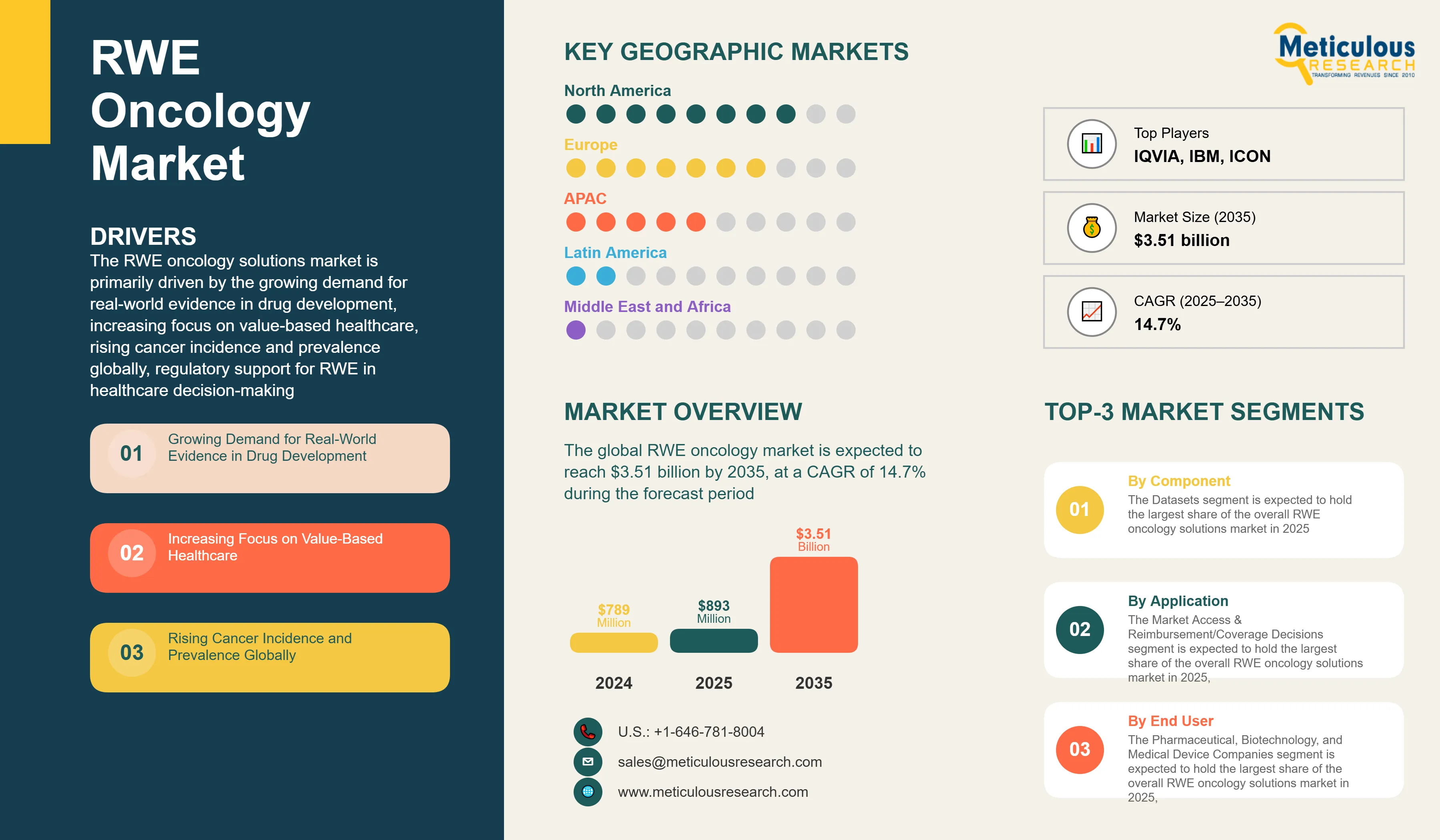The growth of this market is driven by growing demand for real-world evidence in drug development, increasing focus on value-based healthcare, rising cancer incidence and prevalence globally, regulatory support for RWE in healthcare decision-making, and advancements in data analytics and AI technologies.